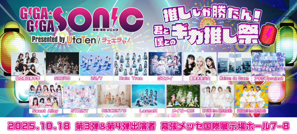 10/18(土)に開催される「GIGA•GIGA SONIC presented by UtaTen / チェキチャ推ししか勝たん!君と僕とのギガ推し祭🏮」に出演します!